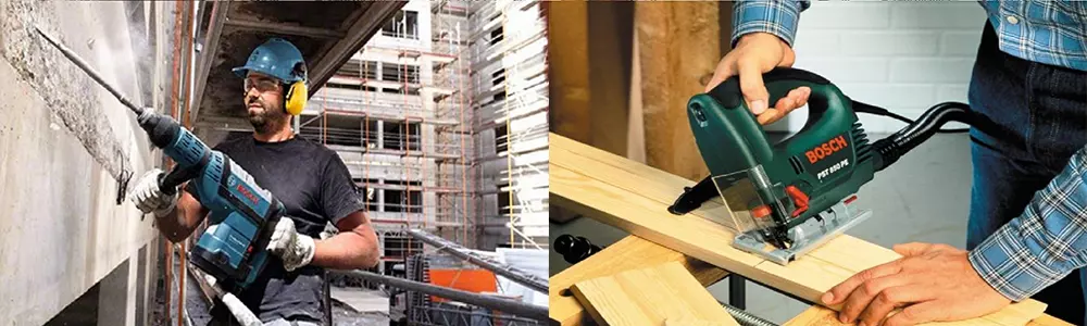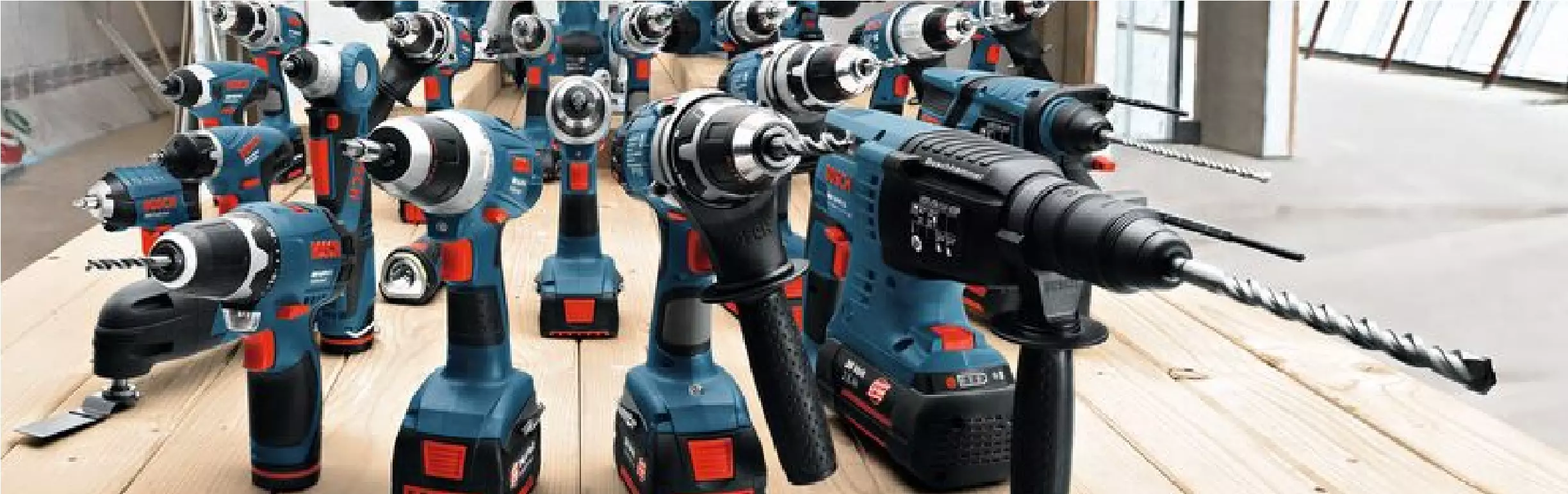 - Электроинструментом. В наличии дрели, шуруповерты, угловые шлифовальные машины, перфораторы и отбойные молотки, пилы, рубанки и т.д.